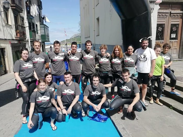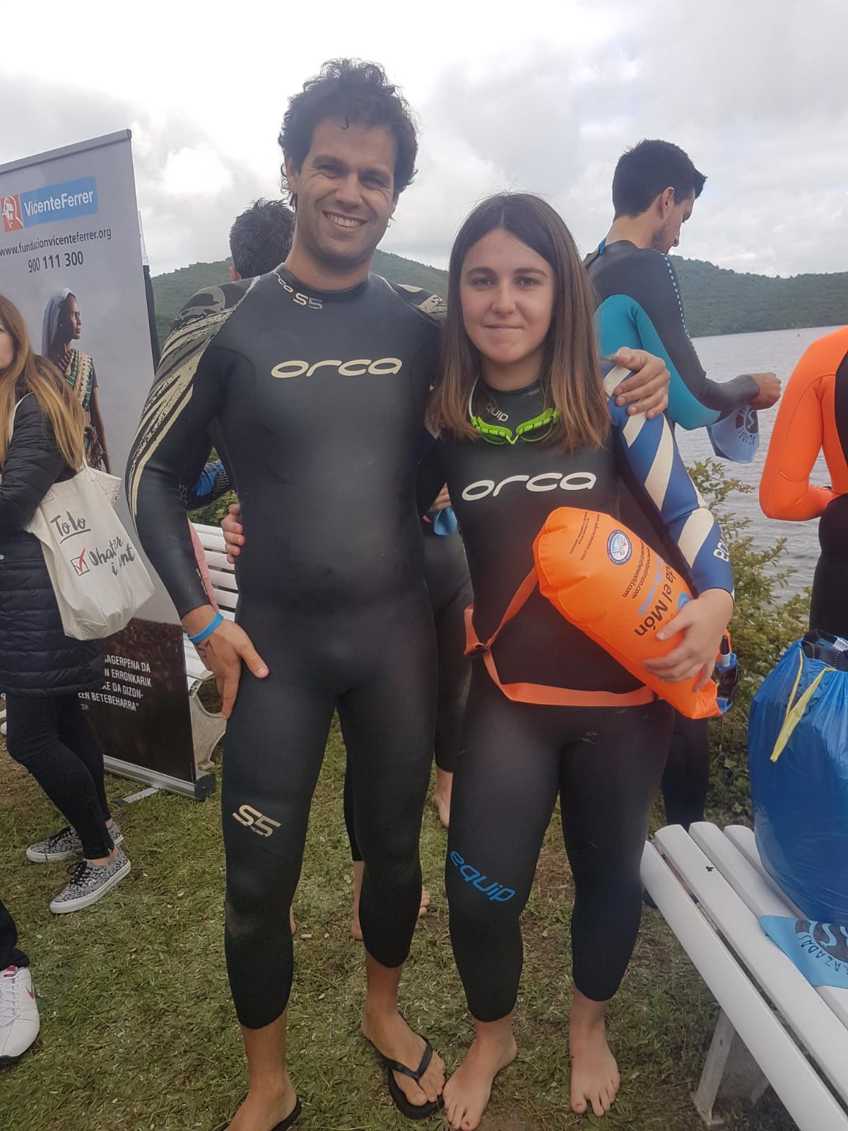 Dos nadadores de Taosa participaron en la travesía de 4km de brazada solidaria en Zuhatza.